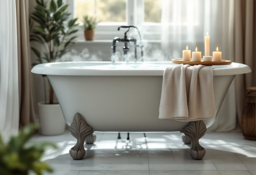 • Sels de bain et huiles essentielles : Utilisez des produits naturels pour améliorer les bienfaits thérapeutiques de votre bain.